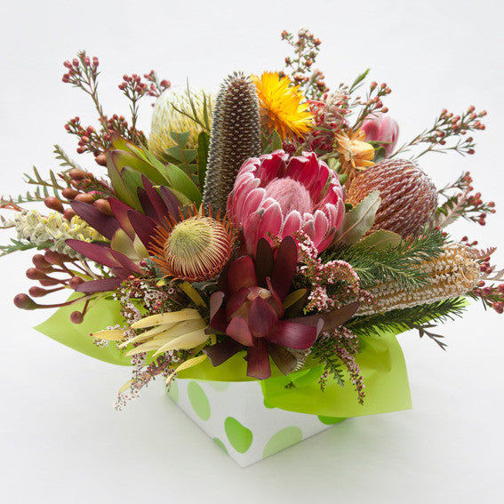 A wonderful arrangement full of premium Australian native flowers and greenery.
