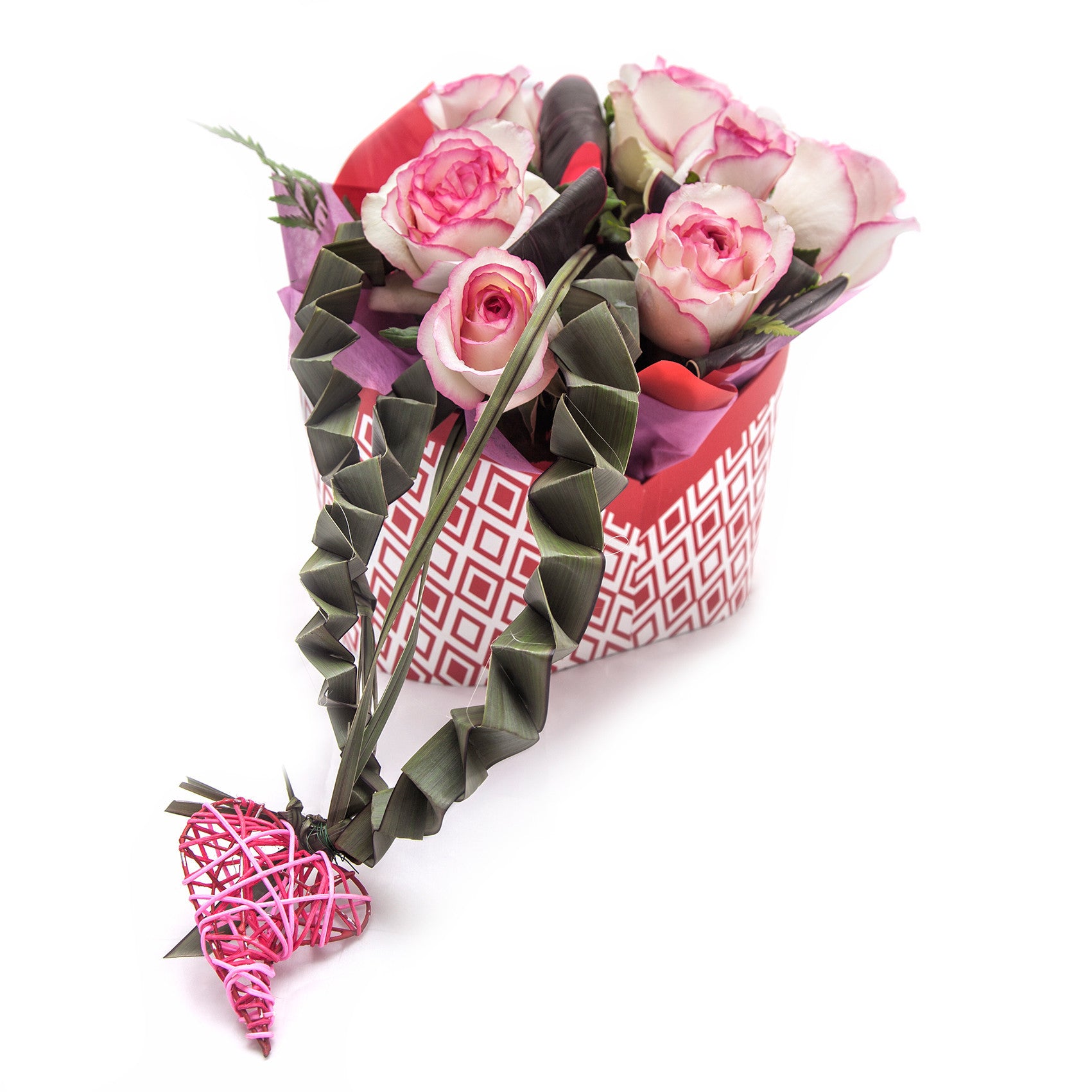 It's no surprise that roses continue to be the most popular choice, so get romantic with romantic flowers, and express your heart to your sweetheart. Roses (colour is subject to availability) are presented in a love-shaped box and decorated with cute heart and pleated leaves.