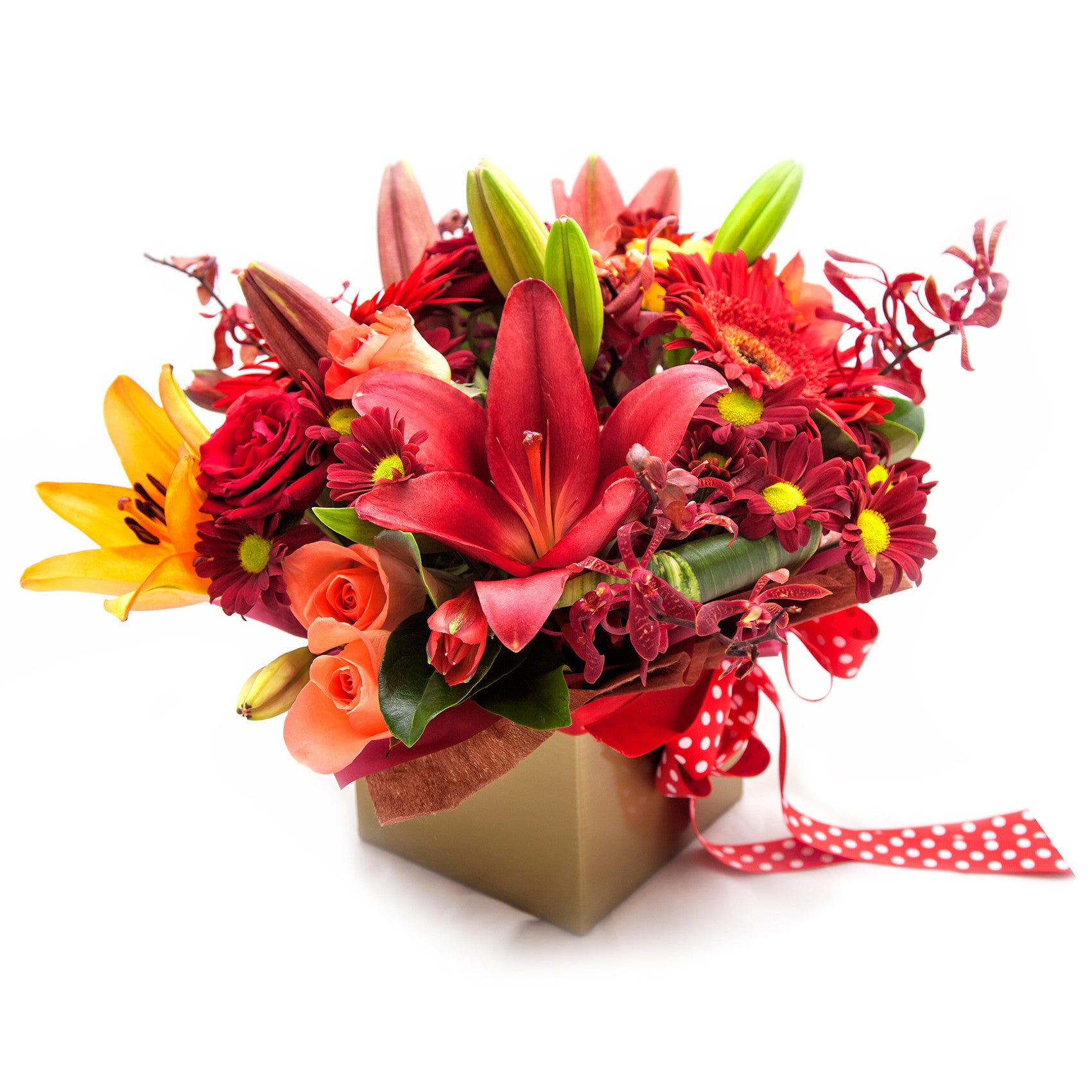 An assortment of beautiful fresh roses, arranged into a box. The rose colours may vary from the image, depending on...